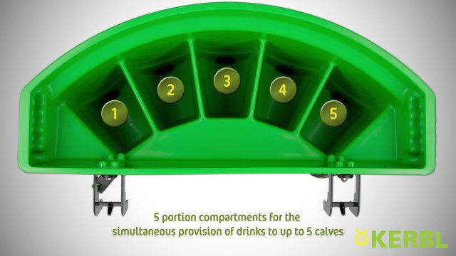 - with 5 portion compartments for the simultaneous provision of drinks to up to 5 calves