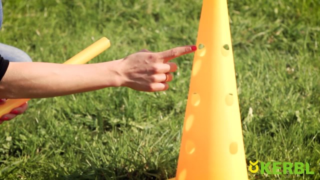 - avec 6 cônes (21 x 21 x 46 cm) et 3 barres d'obstacle en plastique (longueur : 1 m)